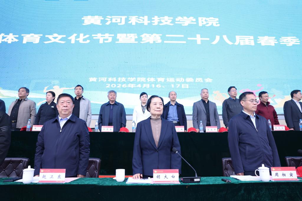 芳菲四月沐春风,青春赛场竞风流。黄河科技学院第十届体育文化节暨第二十八届春季运动会于4月16日上午八时在西田径场上正式拉开帷幕。胡大白、周相寅、赵卫东等校领导、部(院)负责人、有关行政部门负责人在主席台上就座,各方队队员、全体裁判员和运动员、教职工代表、校友代表和学生代表参加。学生中心主任张丕万主持开幕式。