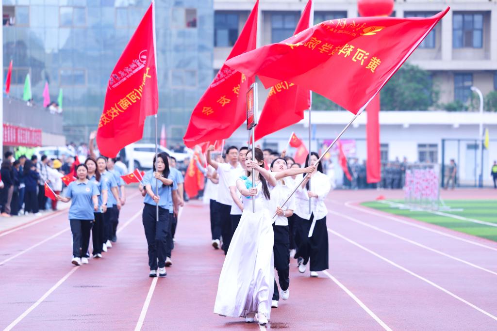 在创办人、董事长胡大白宣布黄河科技学院第十届体育文化节暨第二十八届春季运动会开幕后,全场响起热烈的掌声、欢呼声、锣鼓声,校园处处洋溢着蓬勃向上的青春气息。